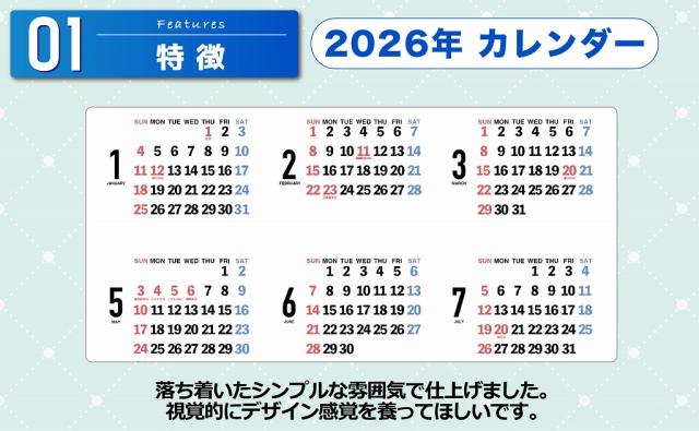 学習・家計管理・スケジュール確認に便利な、実用性とデザイン性を兼ね備えた1枚です。