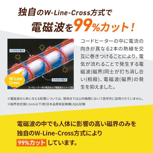 電磁波(磁界)99%カット電気カーペット 1畳用・本体のみ ZCB-20P独自のW-Line-Cross方式で電磁波を99%カット!