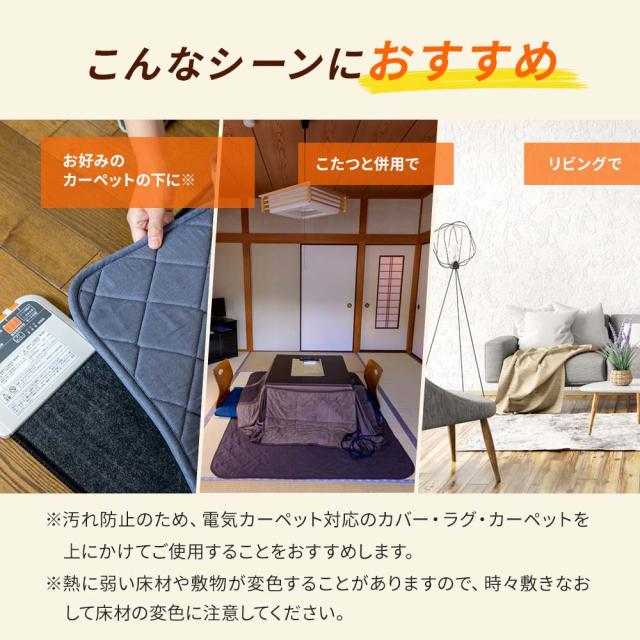 ※汚れ防止のため、電気カーペット対応のカバー・ラグ・カーペットを上にかけてご使用することをおすすめします。