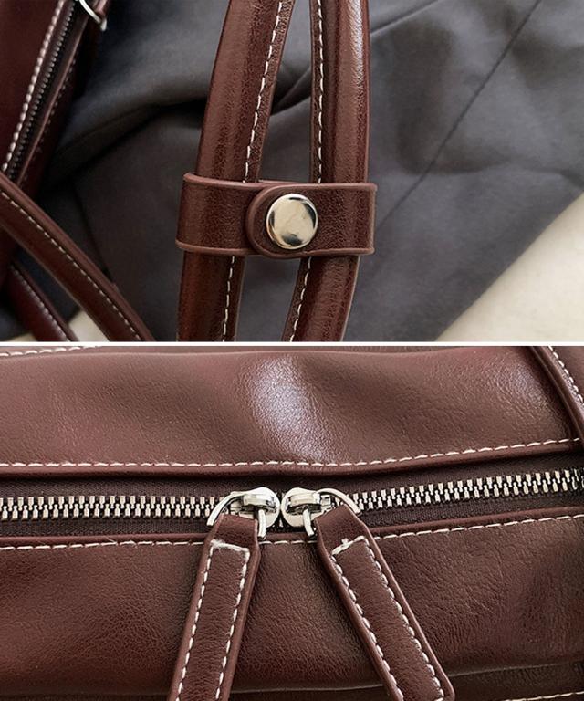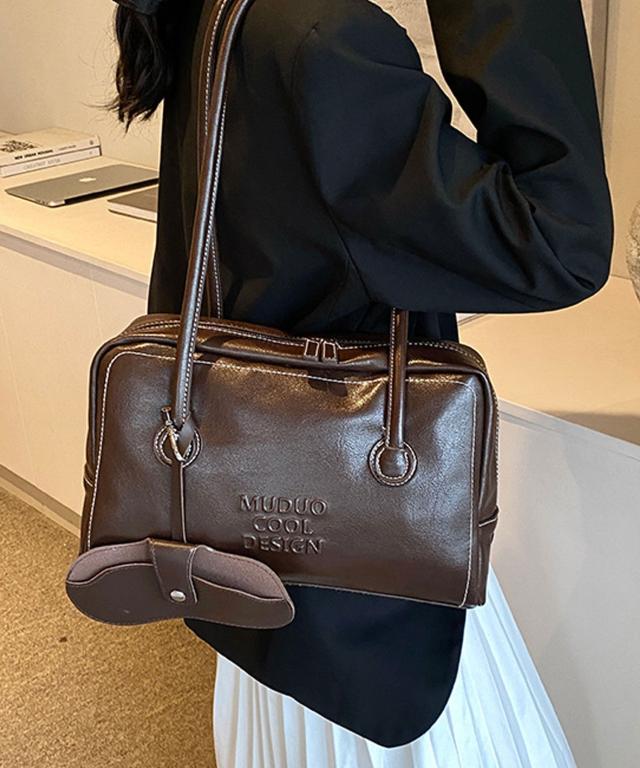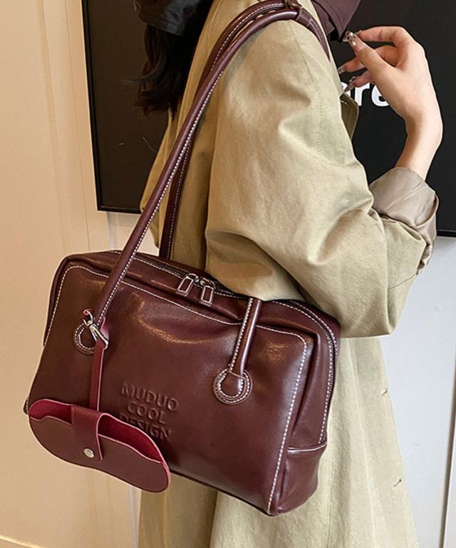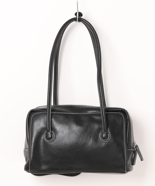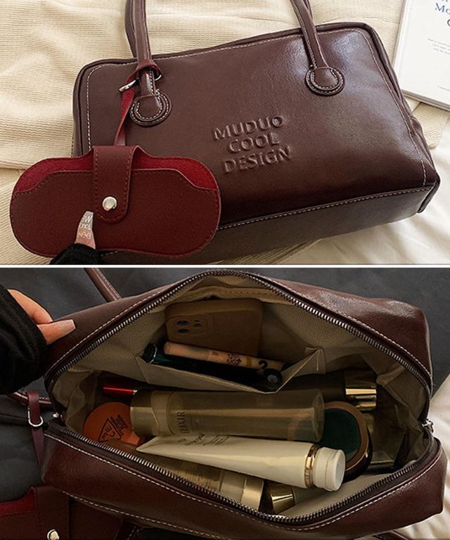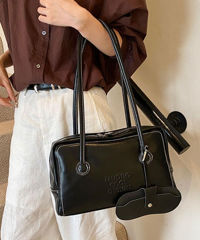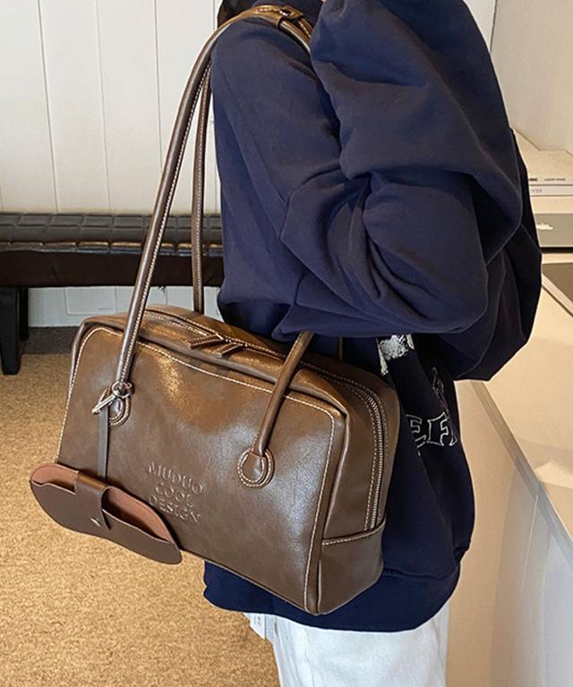 PUレザーライクボックス型ボストンバッグ/トートバッグ/肩掛けバッグ。