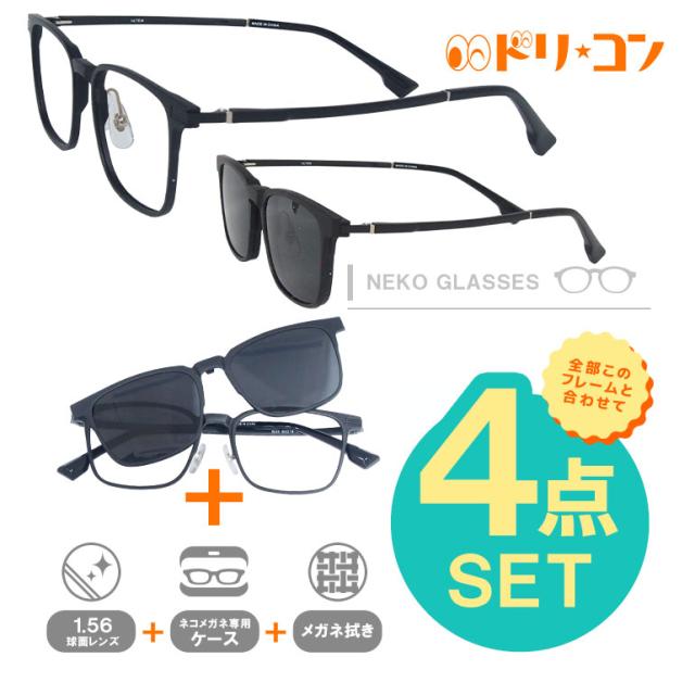 《送料無料》寿ネコメガネ【9020-C1】クリップオンサングラス付きセルフレーム※素材の特性上、顔幅の調整はできません。