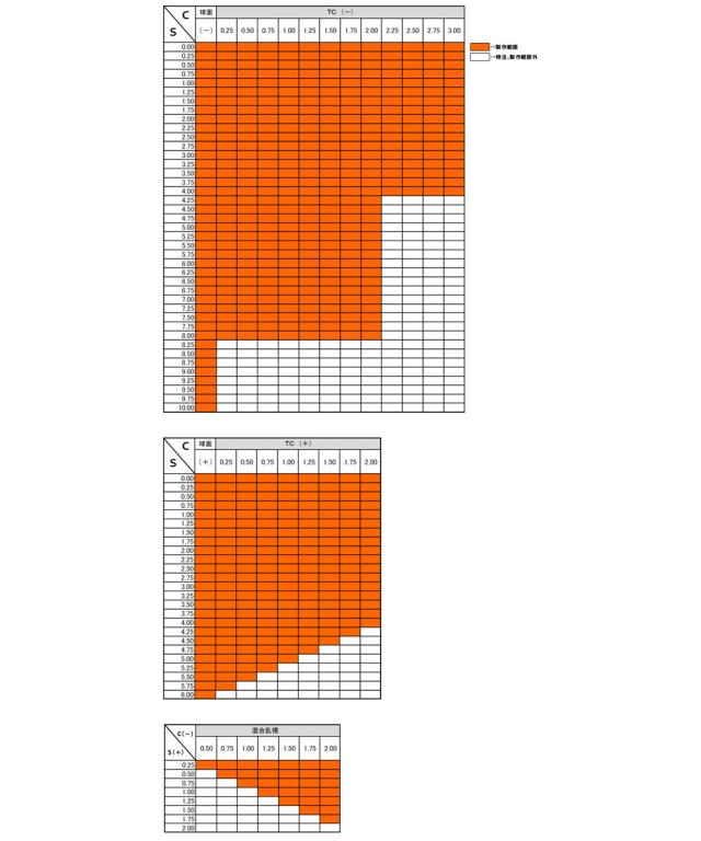 ▼ 標準セットレンズ(1.60非球面レンズ:コンフル1.60)製作範囲はコチラ