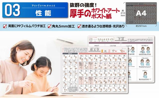 下敷き 指文字 手話 A4(21×29.7cm) 両面タイプ 聴覚障がい 理解支援 学習ポスター 子供 教材