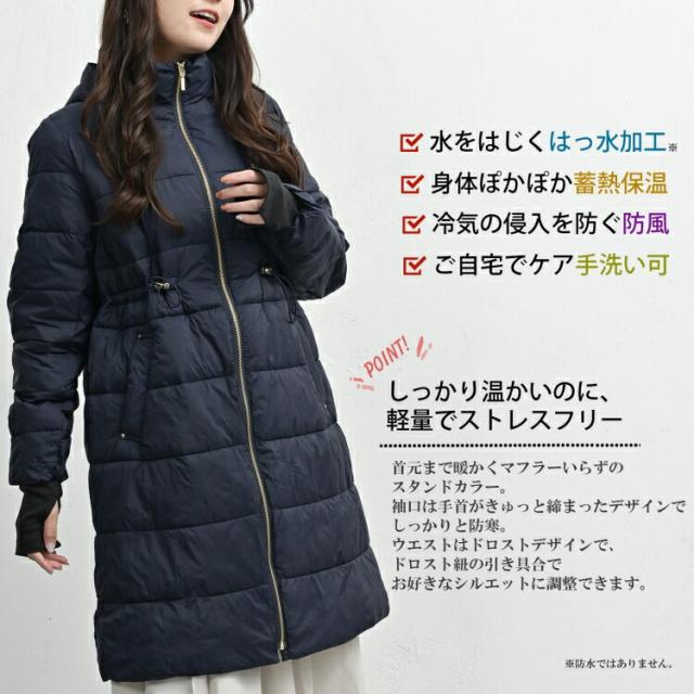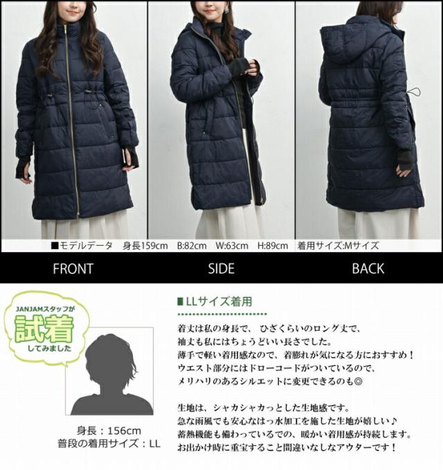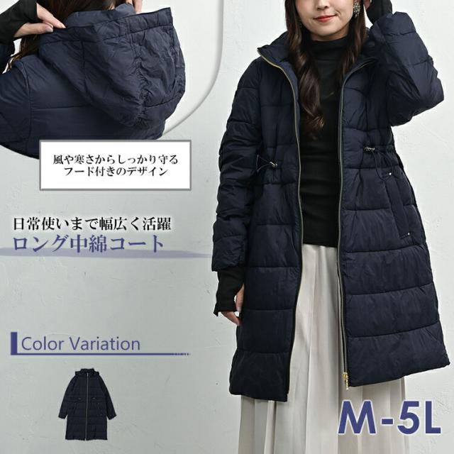 送料無料※沖縄/北海道対象外 大きいサイズ レディース ロング中綿コート 長袖 ジップアップ ドローコード 撥水 防風 防寒 アウター M/LL/3L/4L/5L ゆったりサイズ ぽっちゃり女子 プラスサイズ