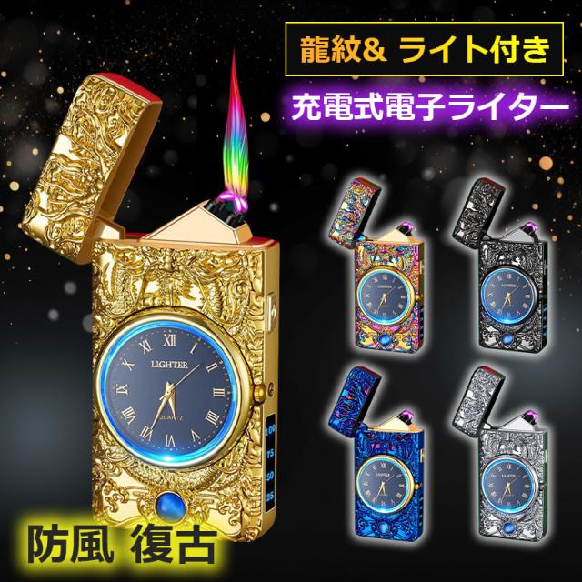 ライター 電子ライター USB充電 防風 電量表示 メンズ レディース おしゃれ キャンプ BBQ ハイキング アウトドア用 喫煙具 キャンプライター 龍浮雕 PSE認証済み