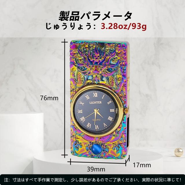 機能: 防風ライター、デジタル時計、LEDライト、バッテリー表示、宝藍色(キャッツアイストーン装飾)