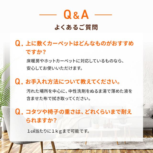 床暖房やホットカーペットに対応しているものなら、安心してお使いいただけます。