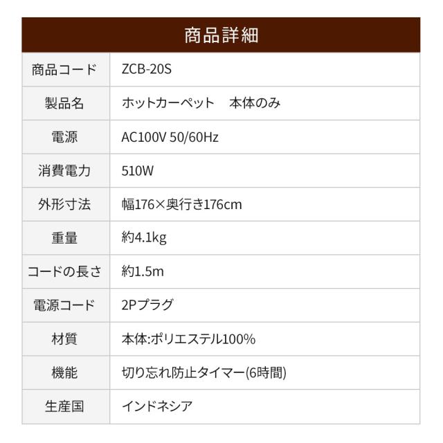 ※汚れ防止のため、電気カーペット対応のカバー・ラグ・カーペットを上にかけてご使用することをおすすめします。