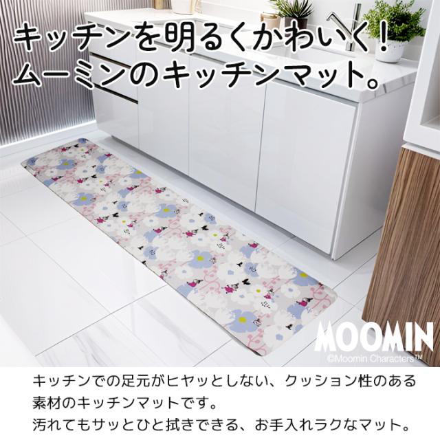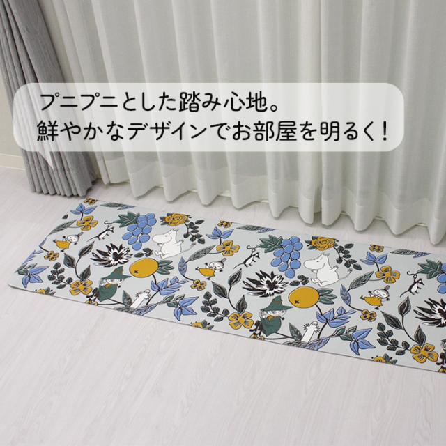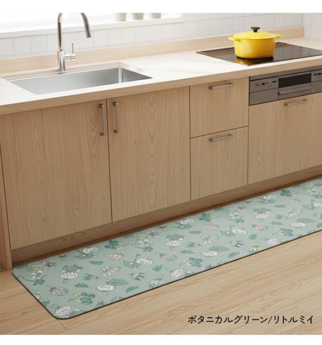 ムーミン キッチンマット 約45×120cm ボタニカルグリーンリトルミイ / ムーミンと草花 (Y) 拭ける おしゃれ 120cm 北欧 マット PVC グッズ かわいい ムーミンシリーズ 室内 クッション素材 リトルミイ スナフキン 花柄 フラワー