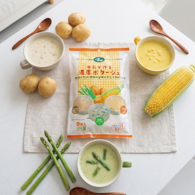 ソーキ 牛乳で作る濃厚ポタージュ 9食入り スープ じゃがいも アスパラ コーン