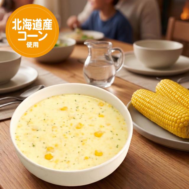 コーンパウダー(コーン(北海道))、食塩、チキンブイヨン、オニオンパウダー、プランタゴ・オバタ末、具(乾燥コーン、乾燥パセリ)/調味料(アミノ酸等)、増粘剤(キサンタンガム)、甘味料(アスパルテーム・L-フェニルアラニン化合物)、香料、(一部に小麦・乳成分・大豆・鶏肉を含む)