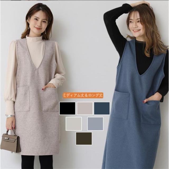 ワンピース ジャンパースカート ノースリーブ ワンピース レディース 40代 ニットワンピース ロングワンピース vネック お洒落 チュニック 無地 膝丈 春 秋冬
