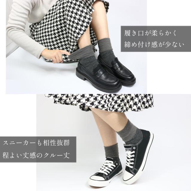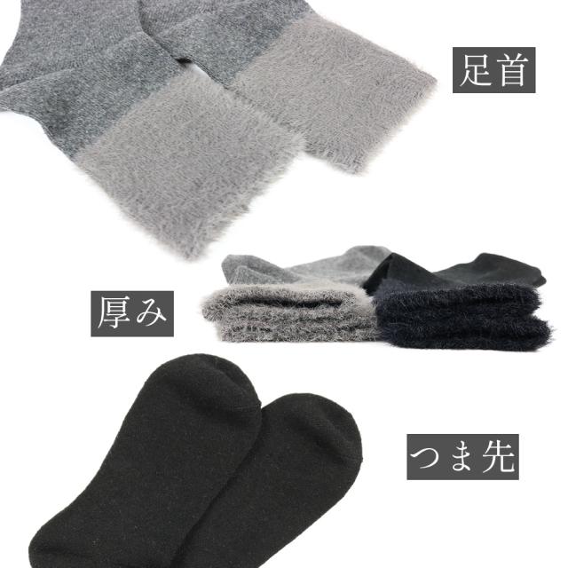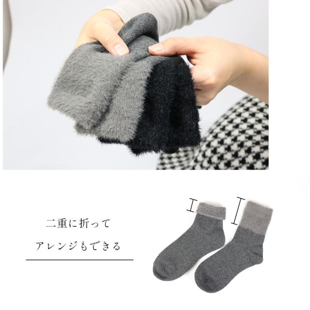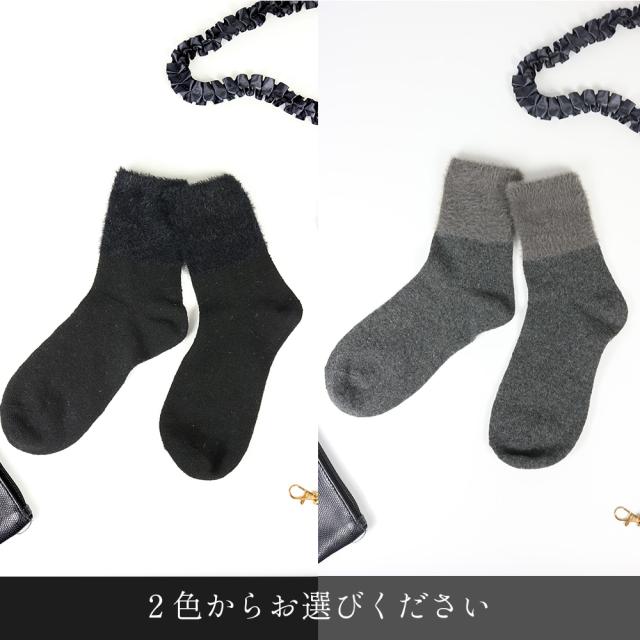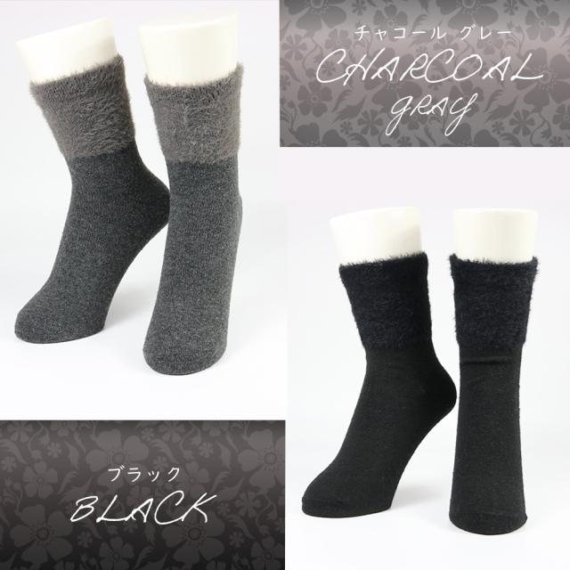 レディース 靴下 毛混 ファー あったか 暖かい クルー丈 秋 冬 おしゃれ 23-25cm かわいい ブラック チャコール シック