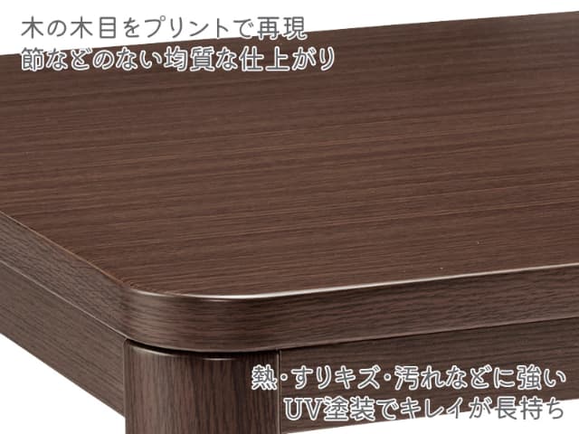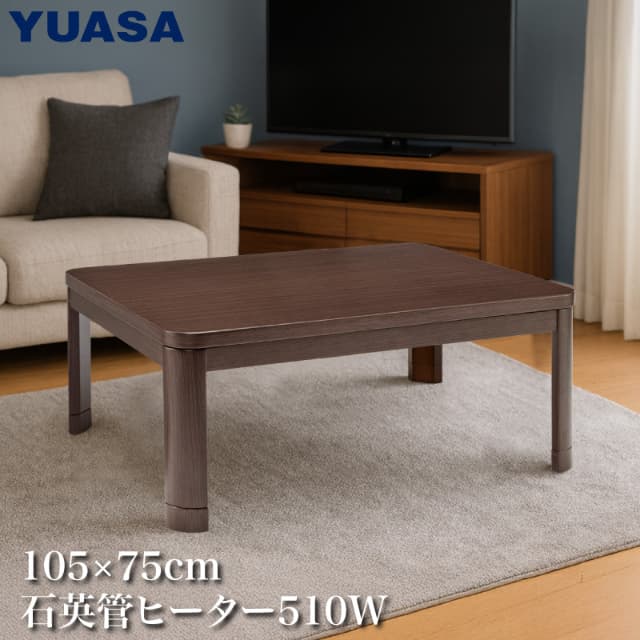【訳あり】ユアサプライムス こたつテーブル YK-DLN1051D(BR) 105×75cm 長方形 継脚付き リビングこたつ UV塗装 家具調コタツ YUASA 【アウトレット】