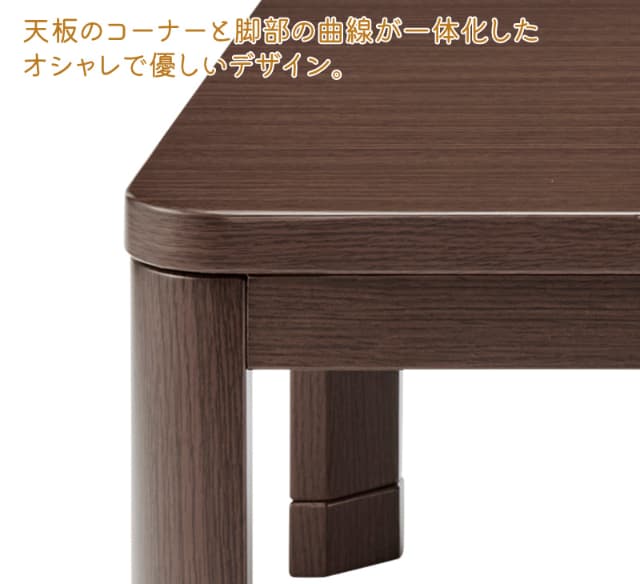 - 天板のコーナーと脚部の曲線が一体化したオシャレで優しいデザイン。