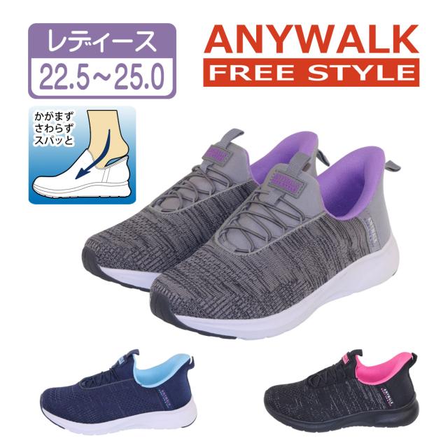 レディース スニーカー ハンズフリーシューズ 屈まず触らずスパッと履ける 手を使わずに履ける 靴 甲のゴム紐で程よいフィッティング スリッポン 普段履き 散歩 旅行 旅 通気性 軽量 幅広 黒 ブラック ネイビー グレー 22.5〜25.0 aw_25560