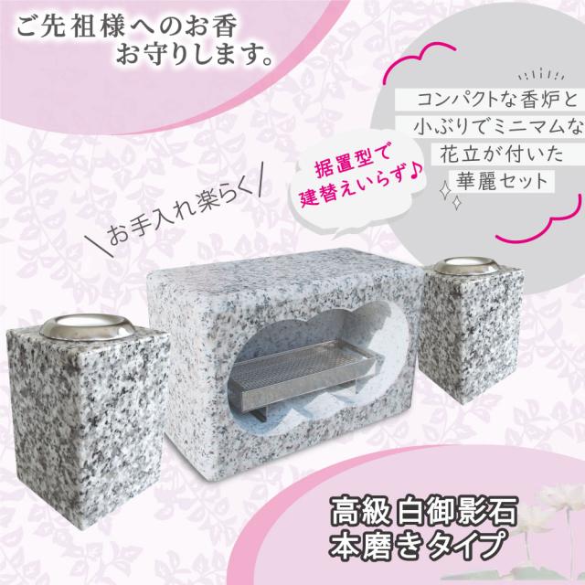 【お墓用】花立S-S39 ミニ香炉セット お墓用 高級白御影石の花立とステンレス製 花筒1対(2本)+ミニ香炉(線香皿付き)【工事不要】置くだけで簡単設置 B0FXG71QNT