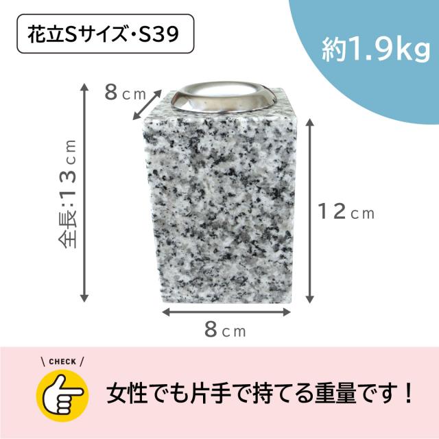 ●花立S-S39 サイズ:幅8cm×奥行8cm×高さ13cm/1本。重さ:約1.9kg/1本。