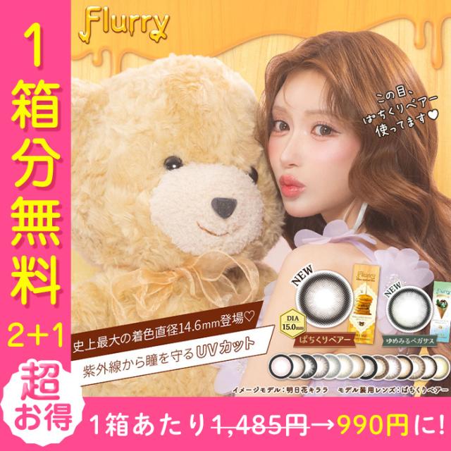 【1箱無料3箱セット】カラコン ワンデー 度あり 明日花キララ フルーリー Flurry UV 1箱 10枚入り 直径14.1mm 14.5mm 15.0mm BC8.6 高含水 ナチュ盛り デカ目 大きめ 大人可愛い 高度数 ハイパワー フチあり ブラウン ブラック グレー