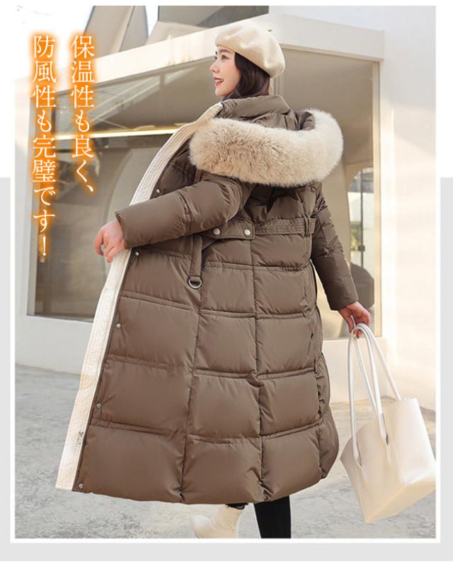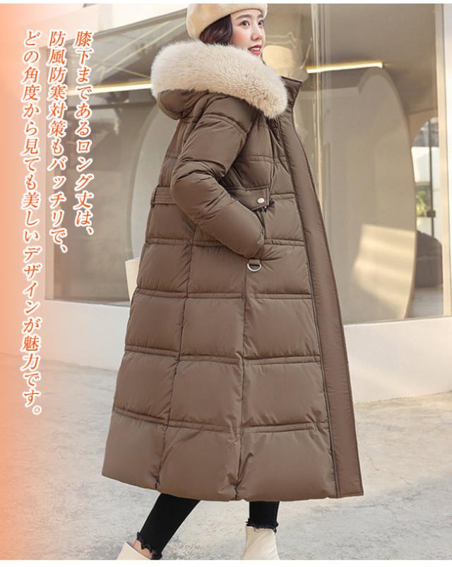 ★中綿コート レディース ロングコート フード付き ファー付き ベルト付き フード襟 ベンチコート アウター 中綿ジャケット 温かい 軽量 防寒 防風 体型カバー 大きいサイズ 厚手 冬用★