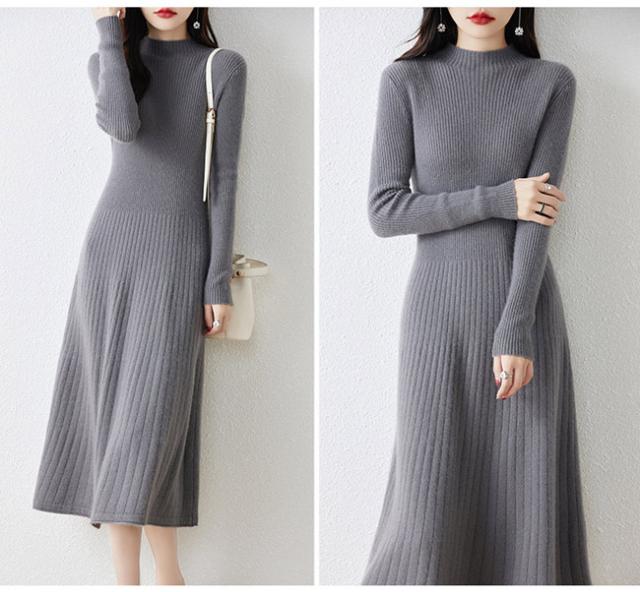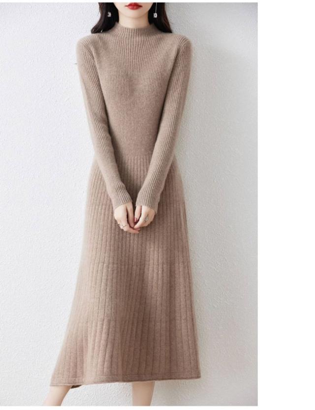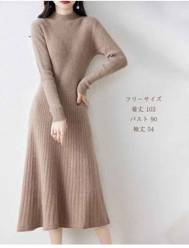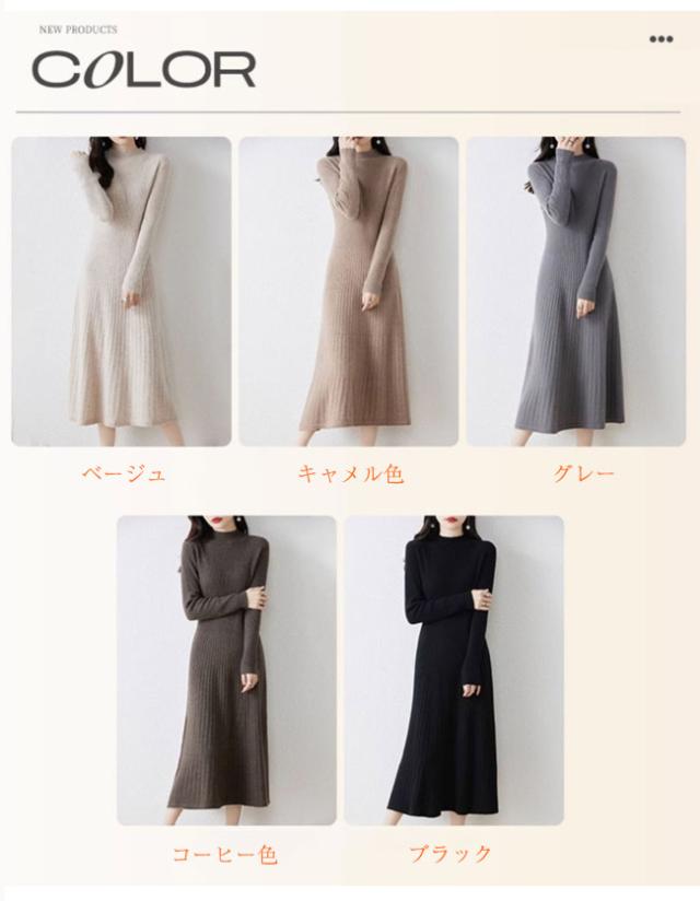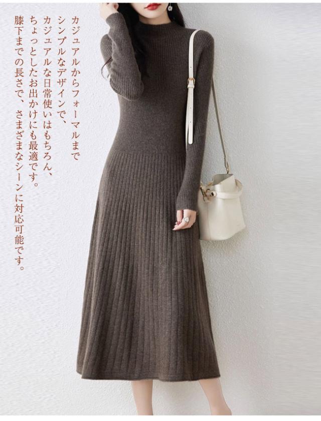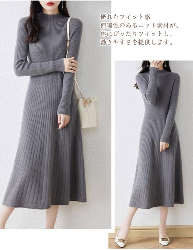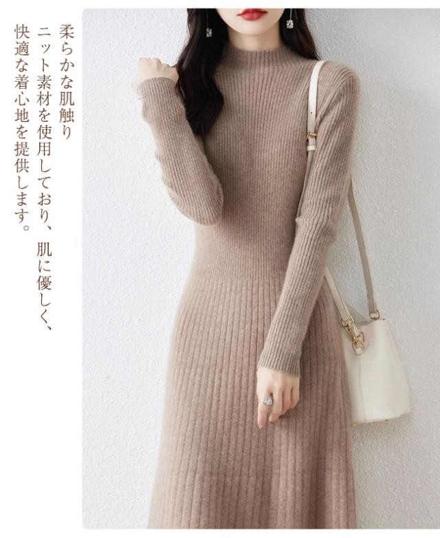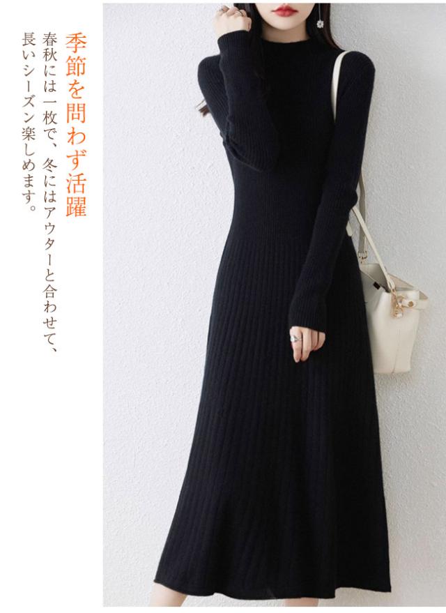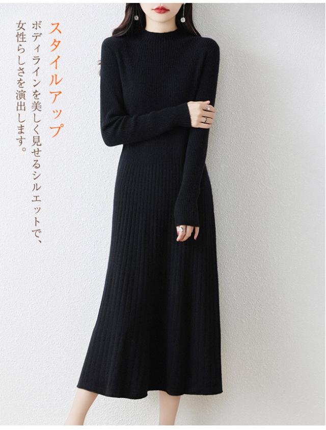 【新発売記念★P12%還元!&クーポンあり】ニットワンピース レディース ロング丈 ハイネック 長袖 ゆったり 重ね着 細見え 保温性抜群 伸縮性 オフィス きれいめ 暖かい 柔らかい シンプル 無地 おしゃれ 大人 通勤 通学