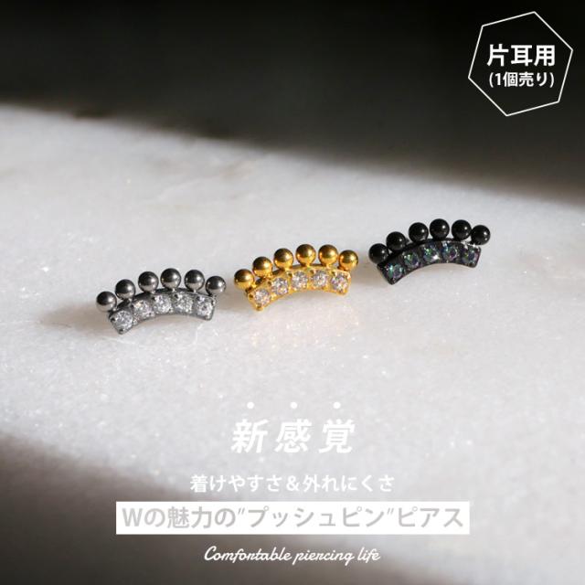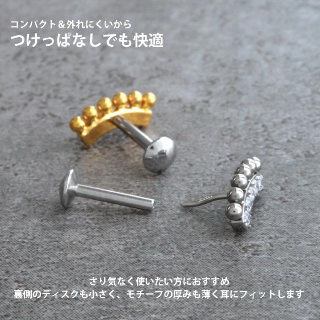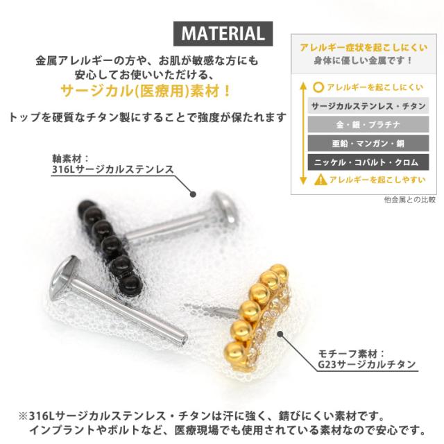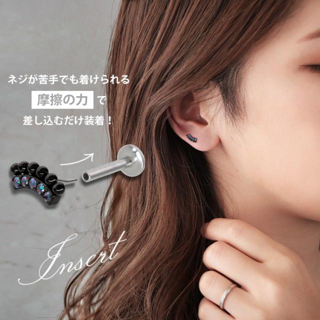 ボディピアスの定番アイテム、ラブレットスタッドがワンプッシュタイプの斬新設計に。 ありそうでなかった、ネジ不使用のボディピアスが登場。トラガスのような狭い部位や、ネジタイプが苦手な方には特にお勧めです。 トラガスのような狭い部位や、ネジタイプが苦手な方には特にお勧めです。