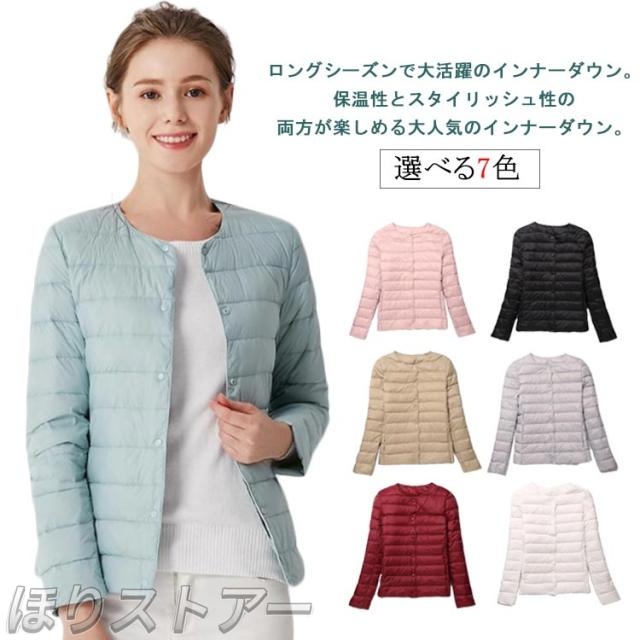 ショート ノーカラー 薄手 ライトダウン 長袖 ダウンジャケット インナーダウン インナーダウン 大きいサイズ レディース シンプル 無地 アウター コンパクト 軽い ダウンコート 秋冬 ラウンドネック 軽量 重ね着 可愛い 防寒