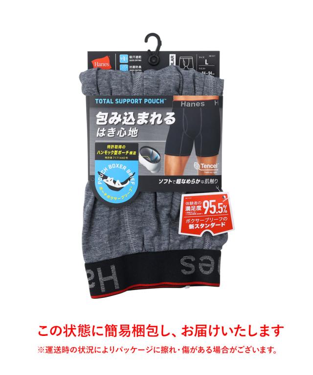 ムレない、スレない、動かない!Hanes(ヘインズ)独自(特許取得)のメッシュライナー構造「トータルサポートポーチ」を採用したCOMFORT FLEX FIT(コンフォートフレックスフィット)メンズボクサーパンツ。ハンモック状の空間に局部がすっぽりと包みこまれるように収まり一日中抜群の“ポジション”キープを実現。その結果内腿との接触による擦れを防ぎ、また摩擦によって発生する蒸れも抑制。太腿部分の汗もしっかりと吸収する股下丈設定もこだわりのポイント。ニオイの発生を抑制する「Fresh IQ(フレッシュ アイキュー)」加工により1日中快適に過ごせるコスパ最強アンダーウェア!