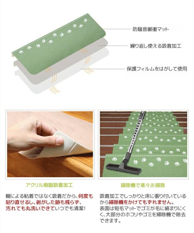 階段マット 55cm×22cm 15枚セット 1枚440円 滑り止めマット 吸着蓄光 丸洗いOK 洗える キズ防止 防音対策 足冷え 廊下敷き カーペット おしゃれ かわいい zh-020