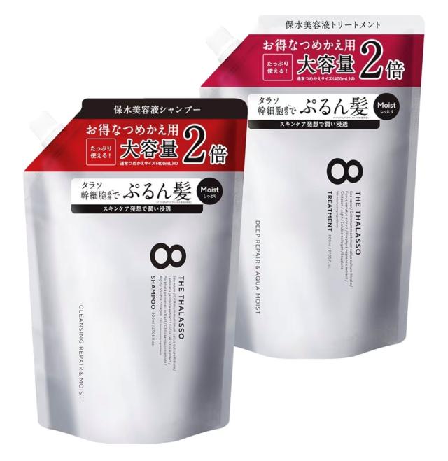 リニューアル前品 大容量2倍サイズ エイトザタラソ モイスト 美容液シャンプー1袋+トリートメント1袋 セット詰め替え 青森倉庫