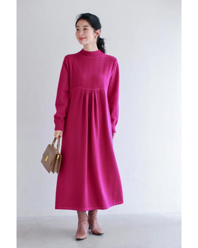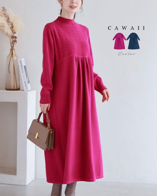 w61634ps 新作 新着 再入荷 CAWAII FRENCHPAVE フレンチパヴェ エレガント ベーシック カジュアル 可愛い かわいい カワイイ おしゃれ オシャレ お洒落 個性 個性的 定番 ベーシック 大人かわいい 大人可愛い 上品 女性らしい デザイン スタンダード ナチュラル きれいめ キレイめ シンプル フェミニン レディース レディースファッション 大人 ママ ミセス 30代 40代 50代 60代 千鳥柄浮かぶウインターカラーニットワンピース 長袖 S M L ワンサイズ フリー 小さめ 小さい 低身長 痩せ ほっそり 小柄 細身 標準サイズ 大きめシルエット 大きい ビッグシルエット ゆったり F サイズ自由 春 秋 冬 秋服 秋物 冬服 冬物 体型カバー 伸縮 ネイビー 紺 ピンク 無地 普段着 日常使い デイリー おでかけ 旅行 女子会 デート ハイネック ギャザー
