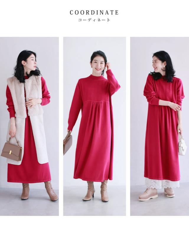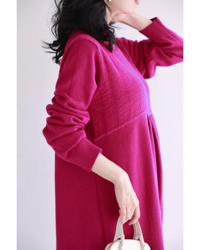 新作12月4日 千鳥柄浮かぶウインターカラーニットワンピース ワンピース レディース ファッション 秋服 冬服 着回し 千鳥柄 体型カバー cawaii w61634ps ピンク ネイビー 日常使い キレイめ シンプル ミセス 30代 40代 50代