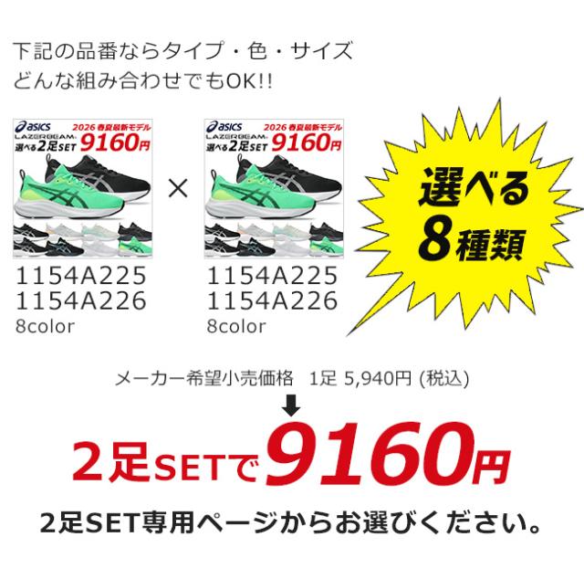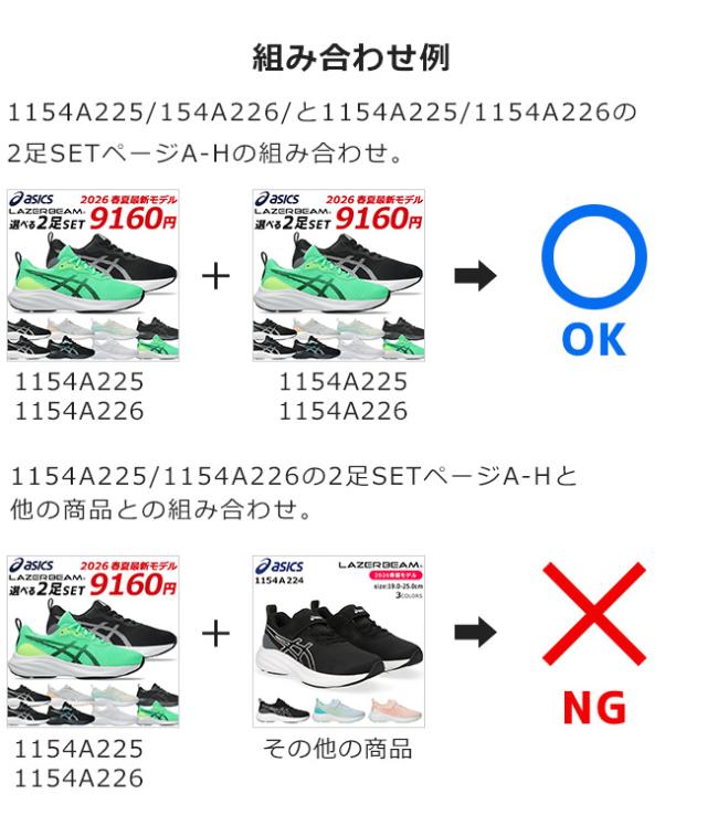 アシックス レーザービーム 2足セット スニーカー キッズ ジュニア 歩きやすい 履きやすい 走りやすい 軽量 メッシュ 紐 1154A225 MP-S 1154A226 MQ ランニングシューズ 男の子 女の子 小学生 ジュニア 子供 シューズ 靴
