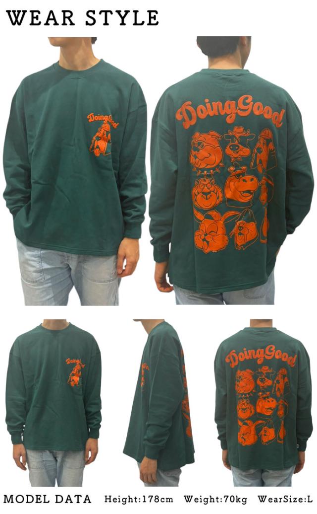 ジムマスター スウェットビッグTEE gym master 10.3oz Doing Good 犬 動物 アニマル 裏毛 長袖 トレーナー メンズ レディース アウトドア キャンプ ビッグシルエット ゆったり ルーズ オーバーサイズ G421705