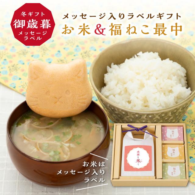 1000gのお米と福ねこ最中ギフト、お歳暮ギフトに。季節のご挨拶・御礼など気持ちを伝えるギフトです