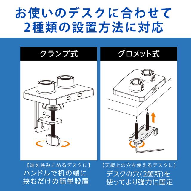 ・Cクランプ式とグロメット式、2種類の設置方法に対応
