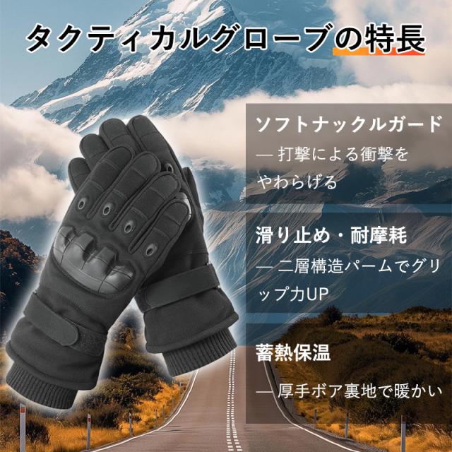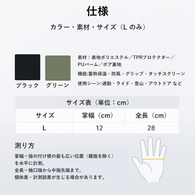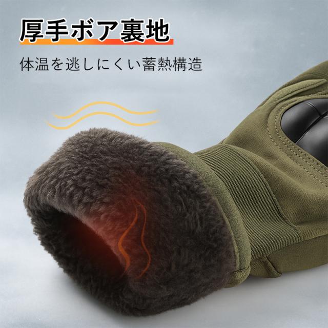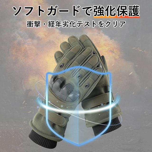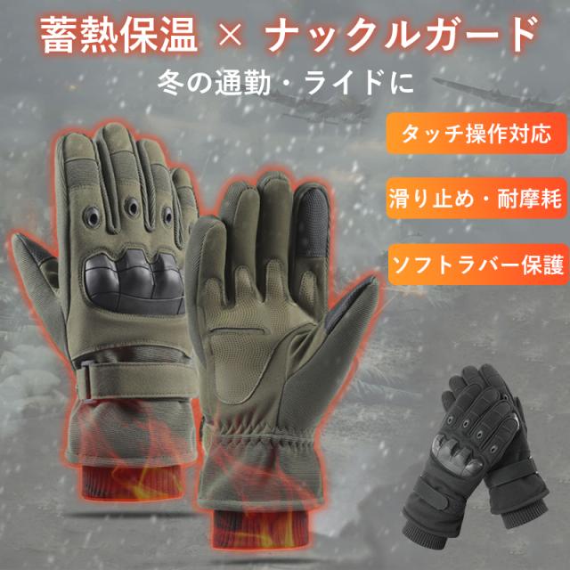 タクティカルグローブ 蓄熱保温 ナックルガード 防風 滑り止め タッチ操作 冬用 通勤 ライド 登山 L ブラック/グリーン
