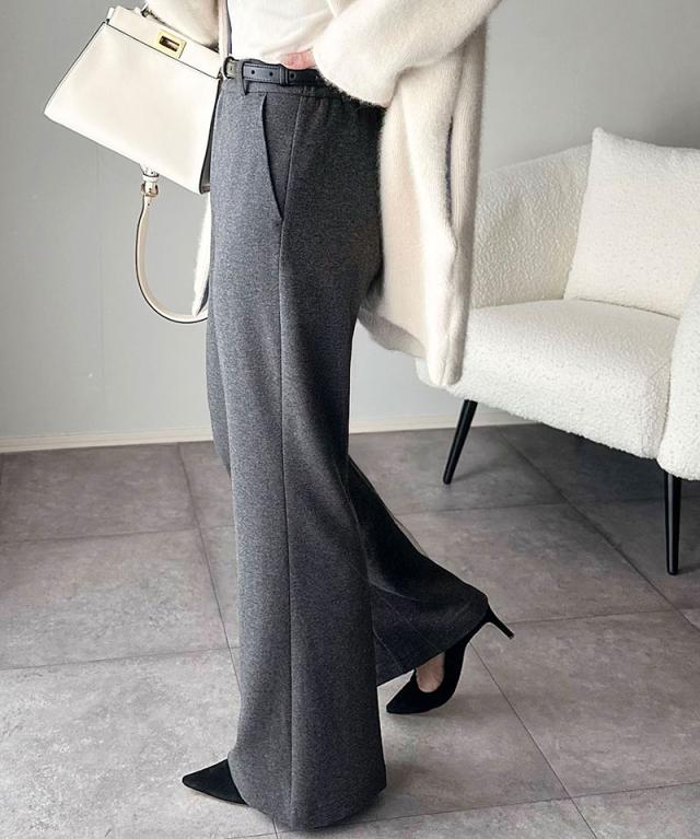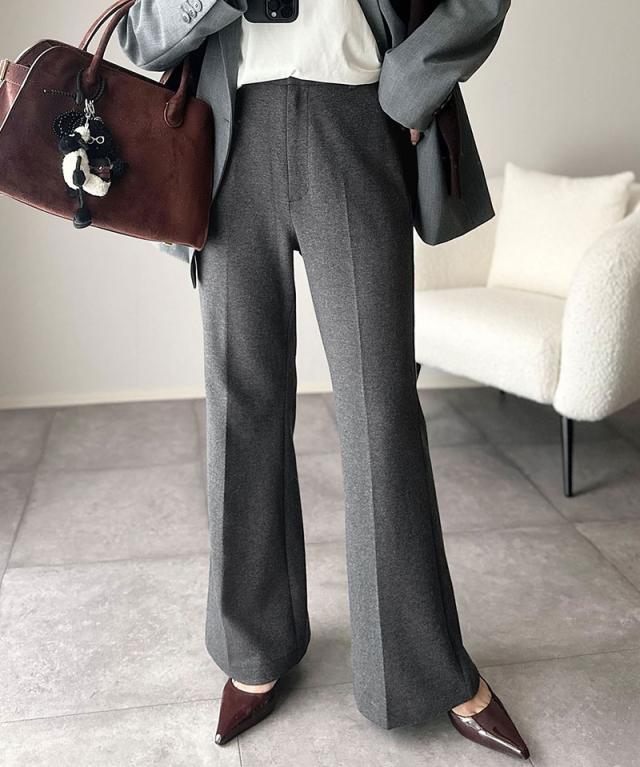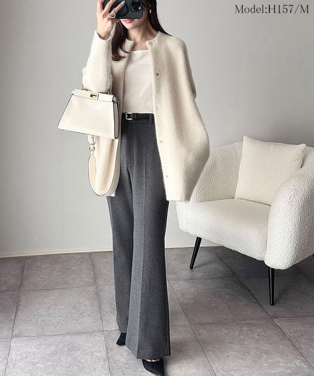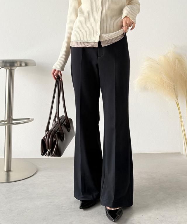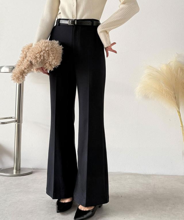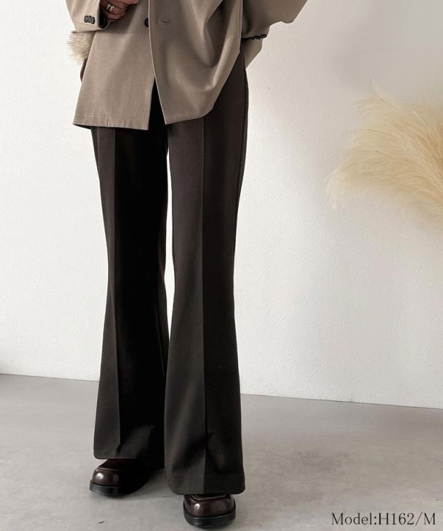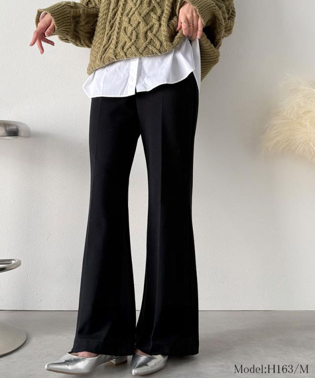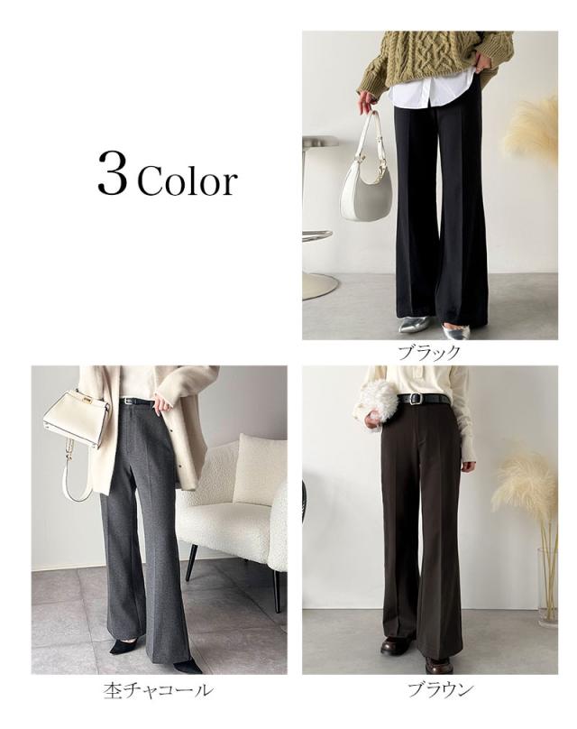 クラシカルエルフ冬新作 ボトムス レディース ゴム パンツ フレアパンツ ブラッシュドジャージ スタイルアップ フレアシルエット オフィス 通勤 センタープレス 後ろゴム カジュアル 大きいサイズ 2025aw ce0940254