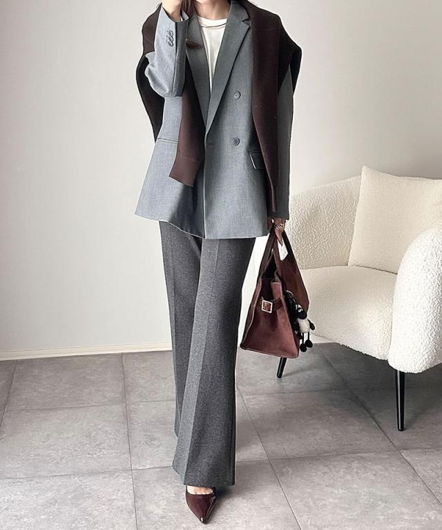 通勤にもぴったりなハリ感のある素材です。幅広いスタイルに対応できるデザインです。