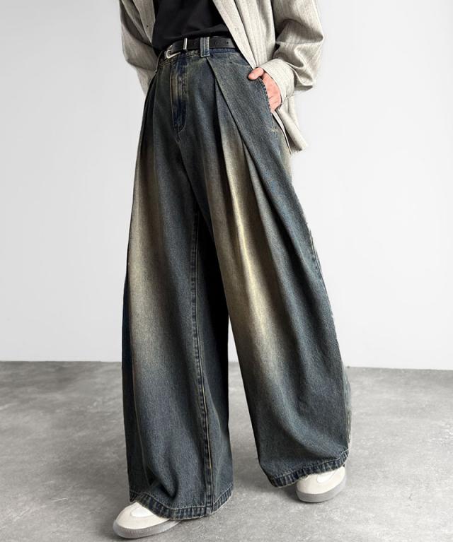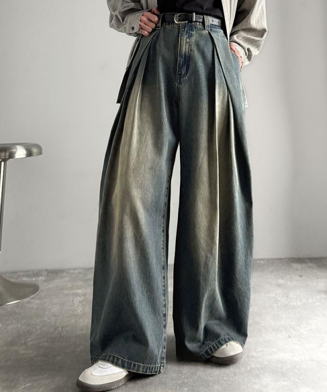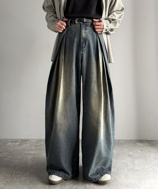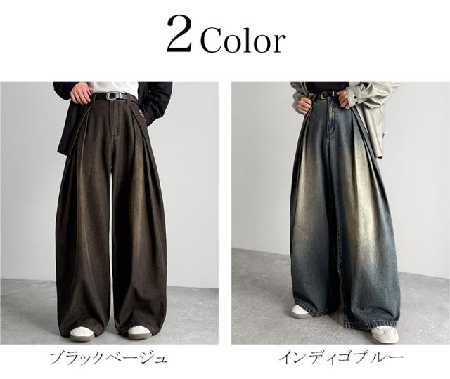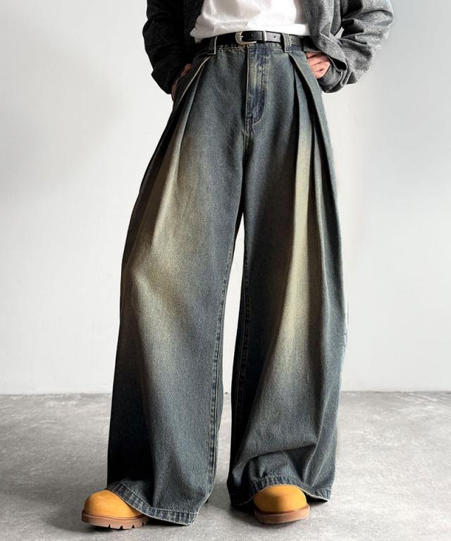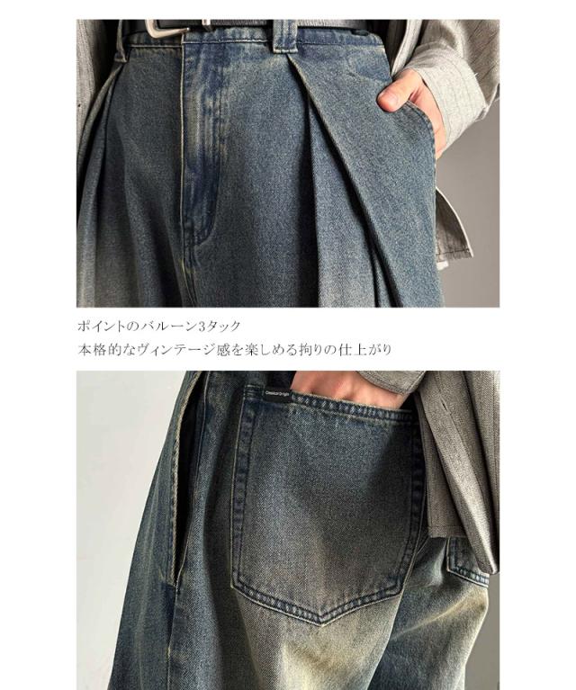 クラシカルエルフ冬新作 Classical Origin デニムパンツ メンズ ゆったり ボトムス パンツ ワイドパンツ バルーンパンツ 3タック ヴィンテージ加工 ボリューム ゆとり スタイルアップ カジュアル リラックス ブラスト入り 立体的 大きいサイズ 2025aw co0900009