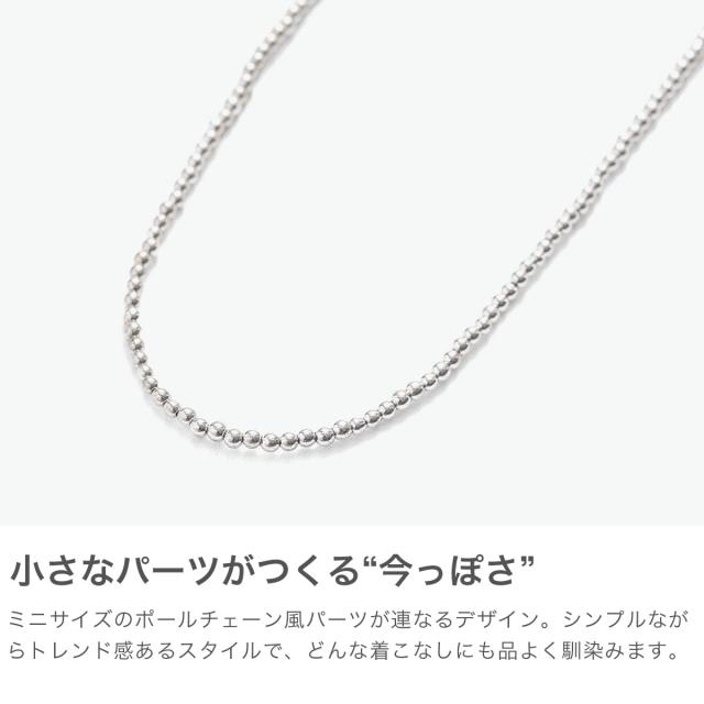天然石(ヘマタイト)を用いた、オリジナルアクセサリーコレクション。ミニサイズのボールチェーン風パーツがおしゃれなネックレスです。留め具はワンタッチで留まるマグネットタイプを採用し、着脱の煩わしさを軽減。単品使いはもちろん、他のネックレスとの重ね付けもおすすめです。
