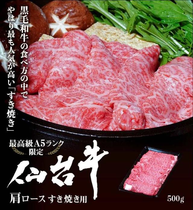 最高等級A5限定 黒毛和牛 仙台牛 すき焼き用肩ロース 500g ※冷凍