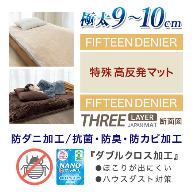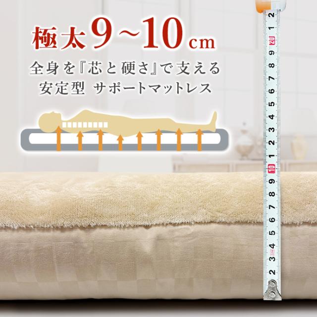 ニオイ対策・防臭/部屋干し臭抑制 日本製 NANO プラチナ® 【Clean Keep 清潔さ長持ち】 ダブルクロス加工をしハウスダスト対策しております。また内生地には防ダニ加工、外生地には抗菌・防臭・防カビ加工をし安心で清潔な衛生加工を施してます。 【低ホルマリン基準クリア】当社の製品は薬剤等を使用しておりますが、身体に害になるような加工は一切しておりません。低ホルマリン基準をクリアした当社の製品は安心してお使いいただけます。 ◆マットレス…増量 【少し硬め】 高反発加工のマットに巻き綿を2重にかさねる事で、重さを1点集中しにくくしました。【国産】 【お取り扱いについて】 こちらの商品は【特殊マット】を使用しております。組成と致しまして、1本1本をストロー状態の極細繊維の綿を特殊工程により、膨らみを持たせ底付き感の軽減を施しております。 また、素材の特性上、特に湿気に弱く、そのまま放置した場合徐々にマットがヘタり底付き感を感じる要因の一つと考えられます。御使用都度のマットレスケアを推奨とさせて頂いております。 尚、一般的なケアと致しましては『陰干し』や『天日干し』等にて湿気をお布団に溜め込まない様にして頂くと少しでも長く御使用を続けていただく事が可能な場合がございます。 |
