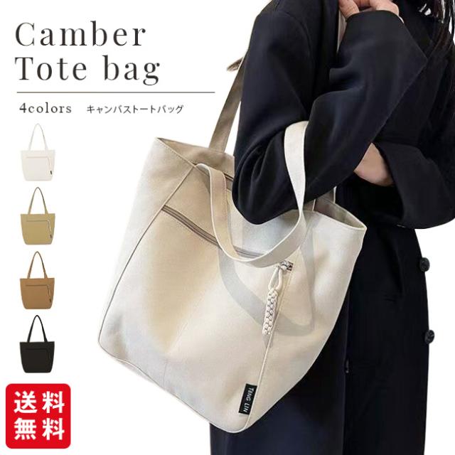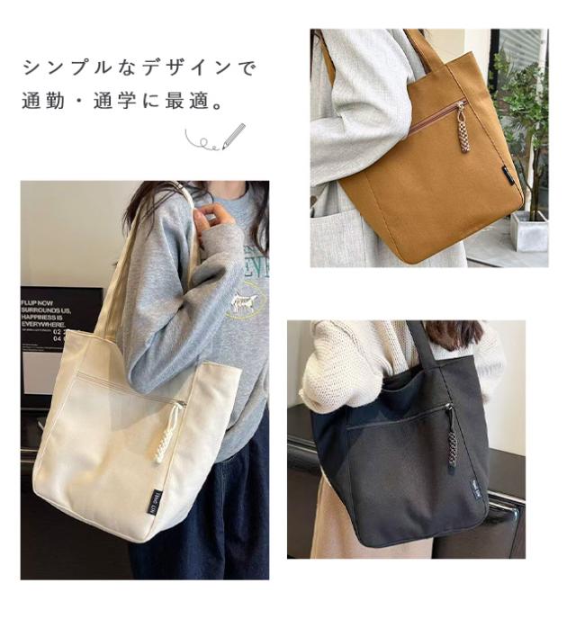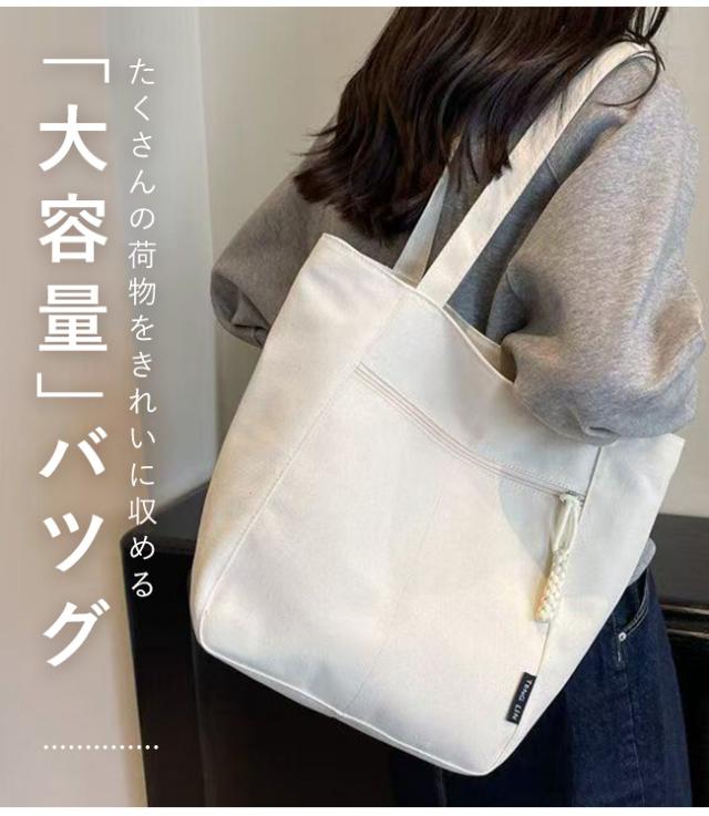 キャンバストートバッグ レディース 肩掛けバッグ かばん カバン チャック付き 手提げかばん 自立 A4 大容量 無地 通勤 通学 オフィス かわいい おしゃれ カジュアル