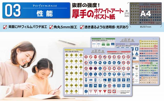 下敷き 道路標識 A4(21×29.7cm) 両面タイプ 日本の交通標識一覧 イラスト付き