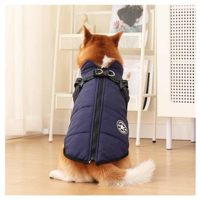 送料無料 ドッグウェア 裏フリース 防寒コート ベスト 背中開き 犬服 厚手 軽量 ジャンパー ファスナー付き 秋冬 中綿入り ペットジャケット 着脱簡単 ハーネス 暖かい 裏起毛 防寒着 小型犬 中型犬