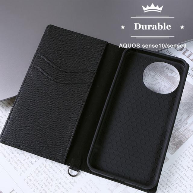 AQUOSsense10 SH-53F AQUOSsense9 Durable 耐衝撃 マグネット不使用 シンプル スクエア 手帳型レザーケース ブラック ブラック アクオスセンス カバー メール便送料無料