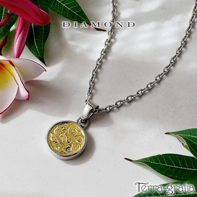 コインモチーフにハワイアン柄とダイヤモンドをあしらったネックレス。