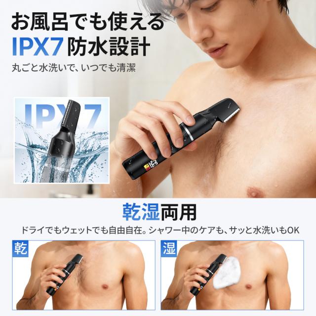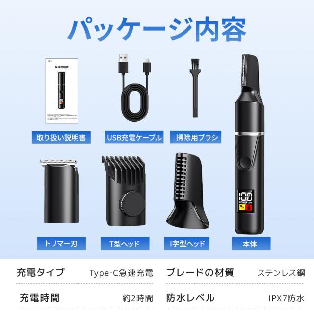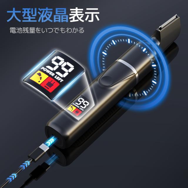 【一本で全身ケア】電気シェーバー IPX7防水 乾湿両用 VIO対応 軽量 静音 脱毛 led 液晶付き バリカン 電池残量表示 急速充電 Type-C 一回充電で一ヶ月使用可能 送料無料