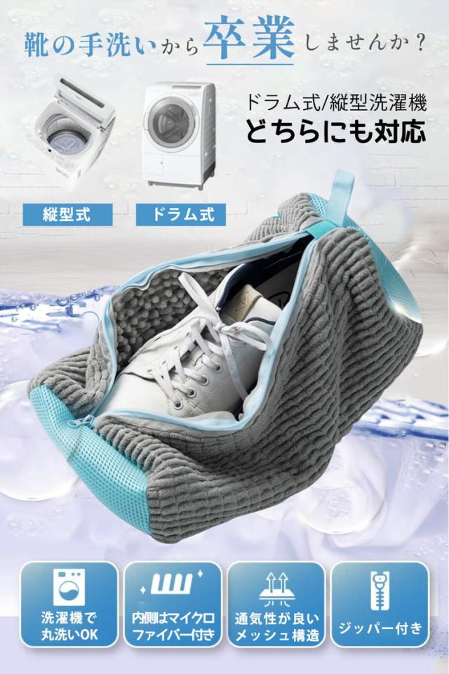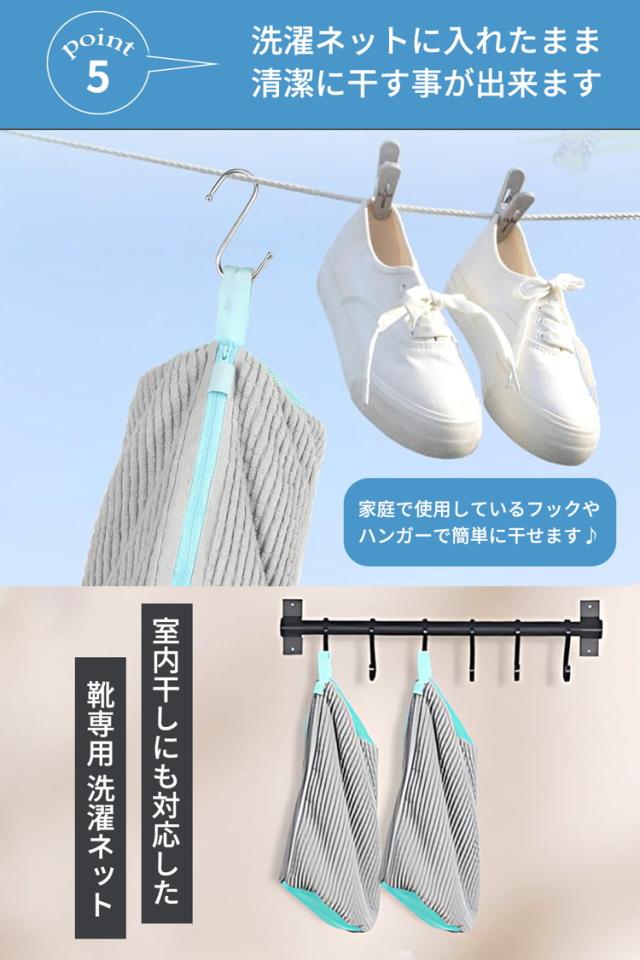 洗濯後はそのまま吊るして乾かせる靴用洗濯ネットです